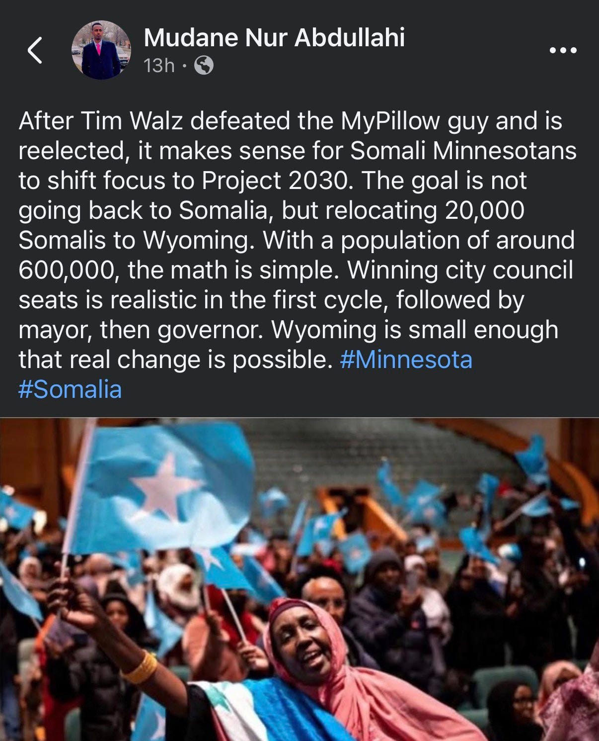 Wyoming, if Paul Revere was still alive, he would be yelling as loud as he could, “The Somalis are coming! The Somalis are coming!”